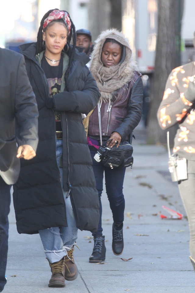 Rihanna kelihatan sangat kasual dan memberi aura retro punk-ish.