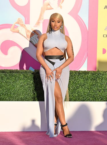 Penyanyi rap, Nicki Minaj anggun dalam persalinan Alaia rona lilac.