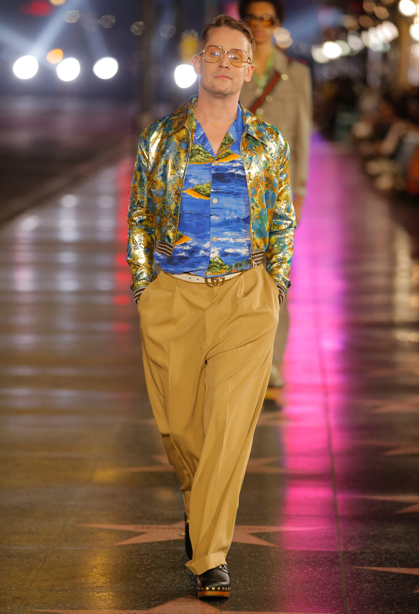 Sepanjang Walk of Stars tersusun dengan kerusi buat para tetamu yang dijemput hadir. Gwyneth Paltrow hadir dalam sut merah yang direka semula oleh Michele seakan sut merah Tom Ford buat Gucci. Duta wangian Gucci, Miley Cyrus turut menghiasi front row bersama Lizzo. Bukan sahaja front row yang gemilang dengan kelibat bintang Hollywood. Malahan, runwaynya juga dihiasi oleh pelakon-pelakon prolifik Hollywood. Ada sahabat baik buat rumah Gucci, Jared Letto berjaket kelabu dan seluar cowboy putih. Macaulay Culkin pula menyarung baju sutera corak pantai.