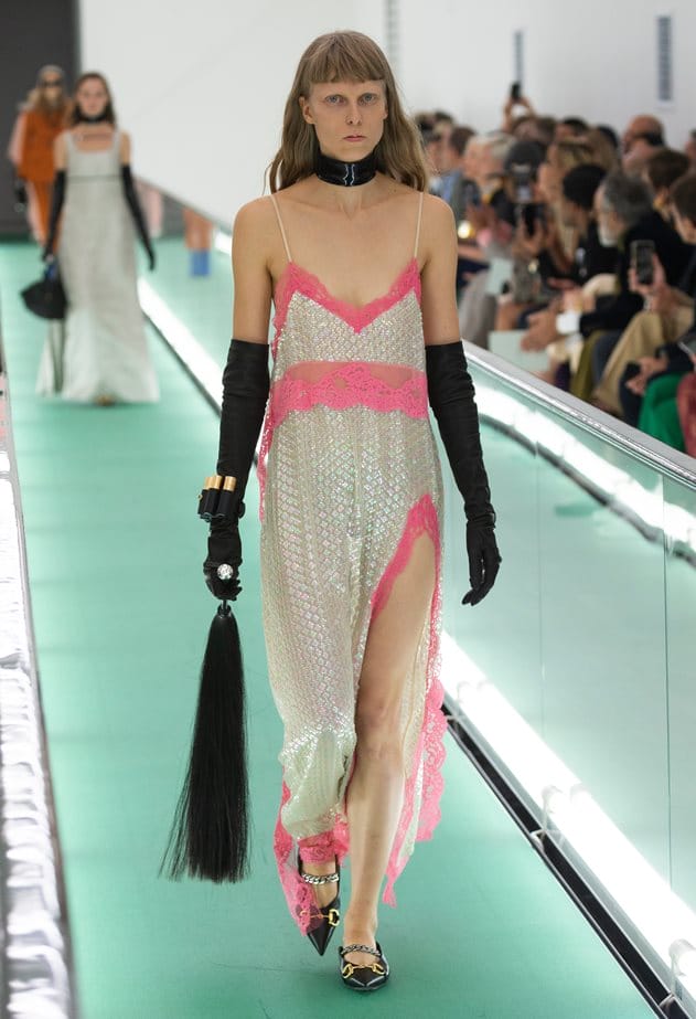 Gucci Hub di Milan mengumpulkan media, selebriti, influencers juga kelompok penting fesyen dalam menyampaikan apa yang terbaru buat Gucci musim bunga 2020. Set yang cukup menarik dengan menggunakan elemen travelator sebagai pentasnya petang itu, kami disambut dengan cahaya merah kemudian seluruh kawasan diterangi dengan pencahayaan putih. Duduk di atas waiting chairs umpama di hospital, Alessandro Michele membuka pentas dengan straitsjacket dan uniform sebelum memperkenalkan rekaan musim bunganya. Sebanyak 89 looks buat himpunan baru ini, dan ratanya tampil lebih ringkas berbanding himpunan sebelum ini yang dikenali dengan aturan maximalism.