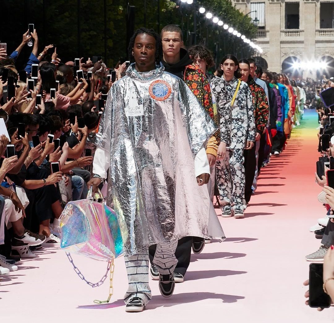 Virgil Abloh mempersembahkan koleksi lelaki yang bertema multi warna untuk Louis Vuitton musim bunga/panas 2019 sewaktu minggu fesyen Paris. Abloh, dilantik sebagai pengarah artistik koleksi lelaki Louis Vuitton pada Mac 2018. Para model yang melewati koleksi tersebut, tampil dalam sut berjaket mohair dan ‘harness’ material kulit, berjalan di atas pentas bercorak pelangi. Sepanjang 200 meter, corak pelangi tersebut merupakan hasil lukisan tangan dan mengambil inspirasi dari filem Wizard of Oz. Turut sama meraikan diversifikasi dan inklusiviti dalam fesyen lelaki khasnya.