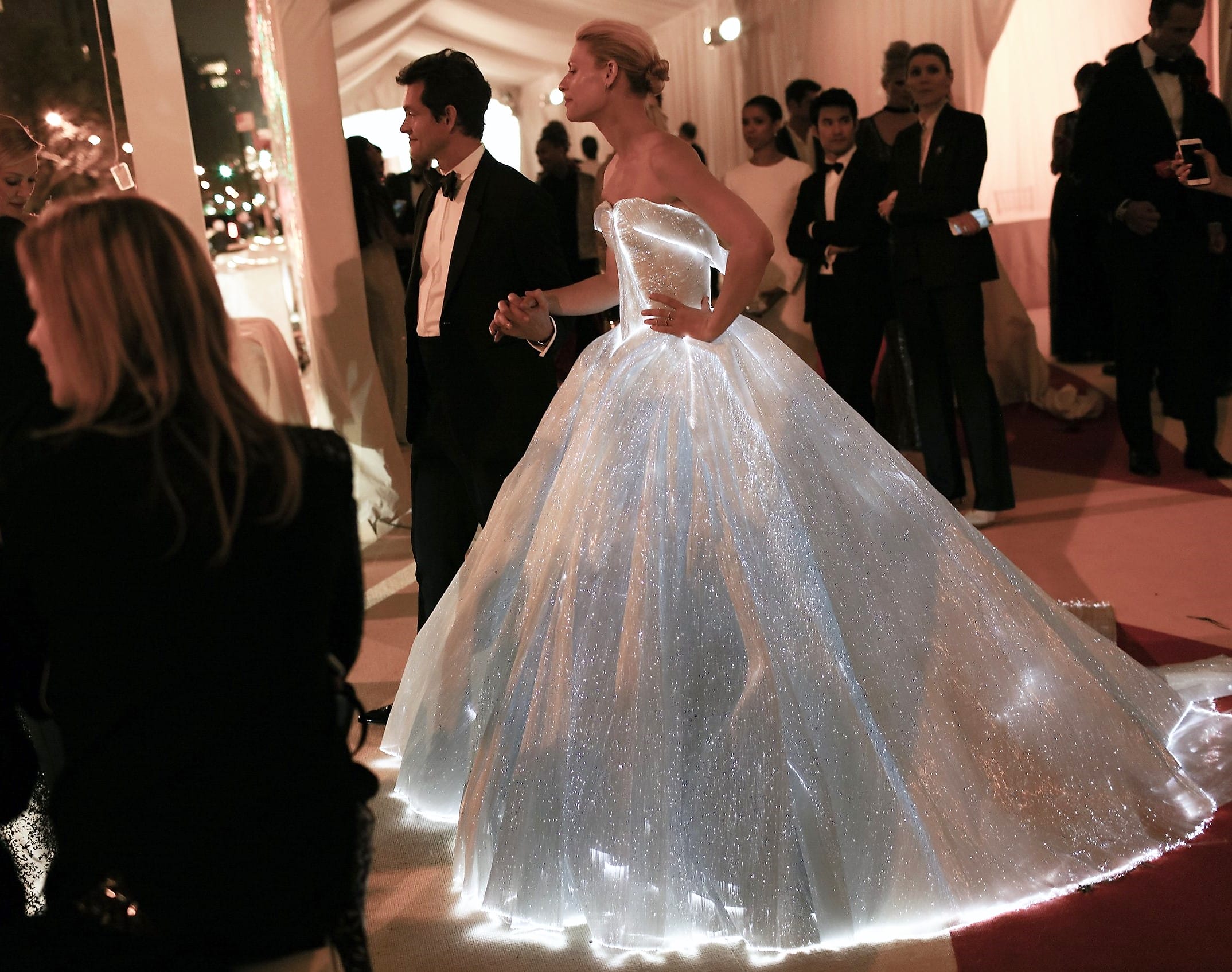 Dress fiber optik oleh Zac Pozen yang dikenakan oleh Claire Danes untuk Met Gala 2016.