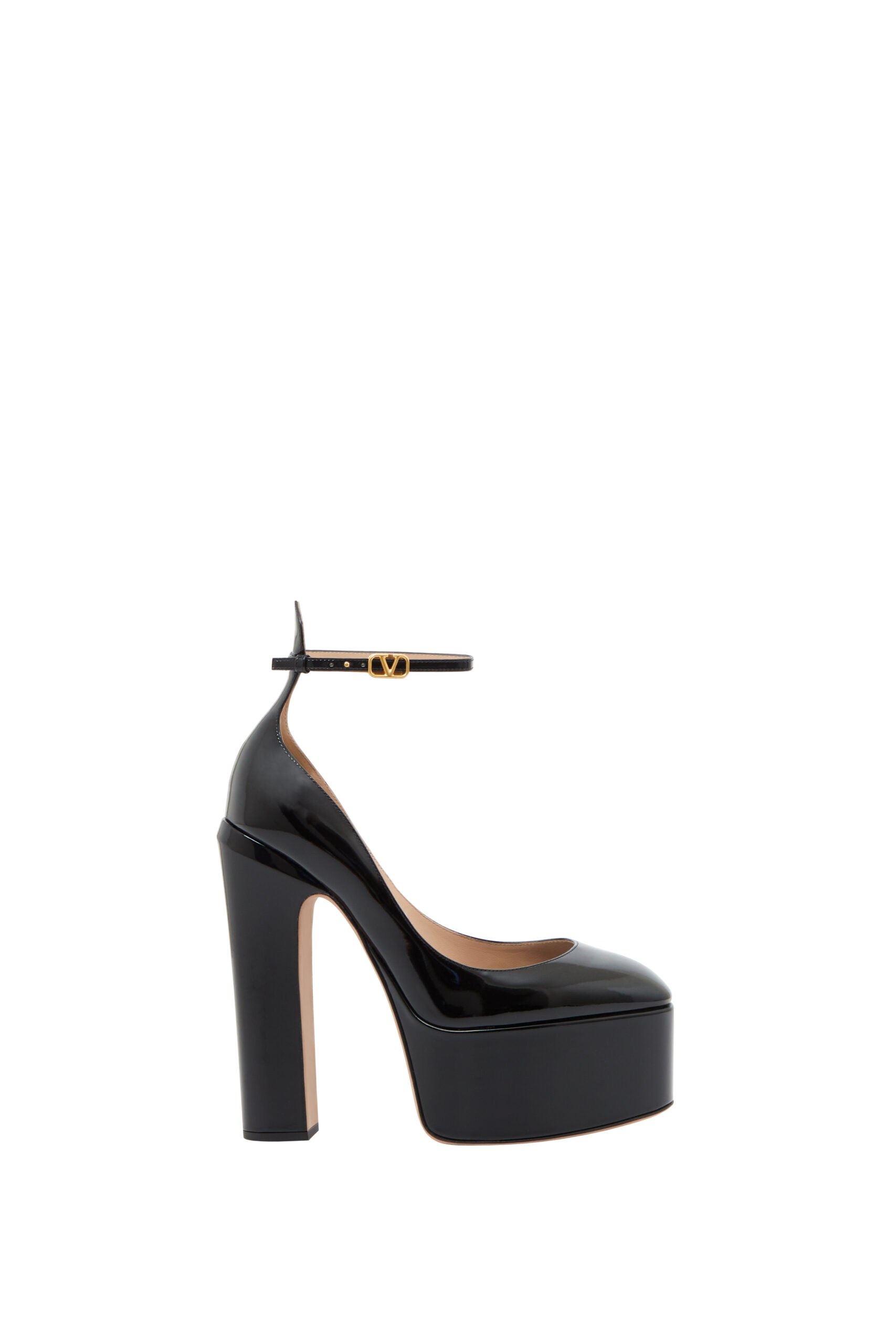 Dicirikan tapak platform tinggi dan mengingatkan pada siluet tali pergelangan kaki yang ikonik, Valentino Garavani Tan-Go berentak retro yang digabungkan dengan daya tarikan kontemporari. Reka bentuk kasut unik ini dengan pantas membentuk stail ikonik, dengan gancu VLogo Signature yang menandakan kod gaya rumah fesyen Valentino.