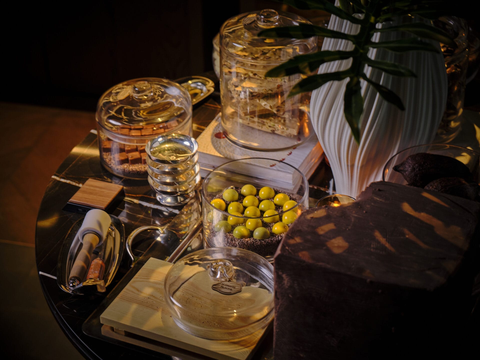 Bilik tetamu dan suite di atas bandar direka sebagai tempat perlindungan peribadi. Reka bentuk menekankan identiti budaya Malaysia dengan tafsiran moden serambi tradisional di tingkap, lengkap dengan katil disaji pemandangan panoramik moden. Panel cermin diletakkan strategik memanjangkan pemandangan dan mencipta relung intim. Panel dinding linen dan perincian loyang halus menambah tekstur dan kehalusan. Almari pantri tersuai menampilkan pintu skrin ilham batik. Palet neutral beraksen ton berwarna-warni mencerminkan semangat Malaysia bersama kemewahan anggun.