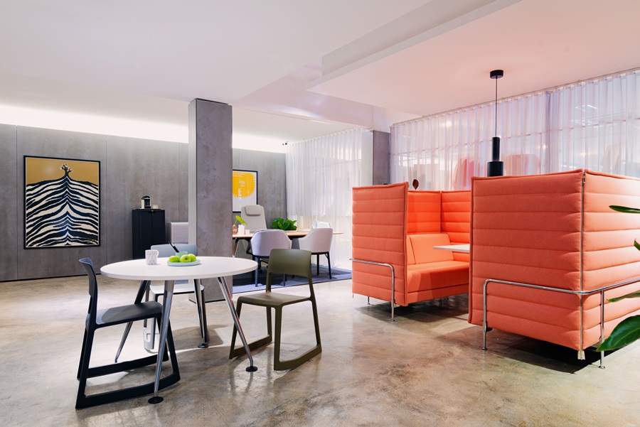 Selain ruang kediaman, pengunjung boleh membina ruang kerja bergaya daripada rangkaian perabot dan aksesori Vitra.