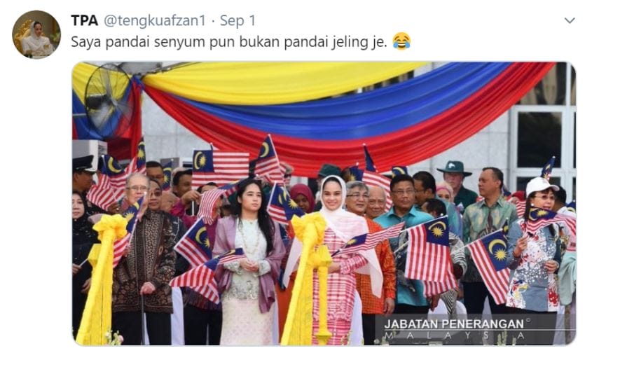 5. Membalas komen-komen netizen,Tengku Puteri Afzan membalas komen netizen dek gaya jelingannya dengan kepsyen lucu “Saya pandai senyum pun, bukan jeling saja”.